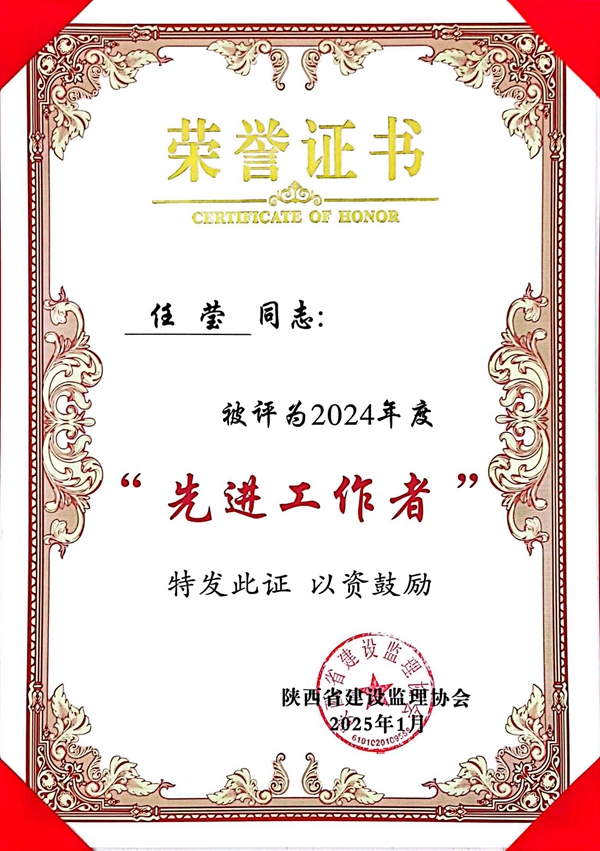 同时,公司办公室主任任莹同志凭借在行业内的杰出表现和突出贡献荣获了“2024年度陕西省建设监理协会先进工作者”荣誉称号。
