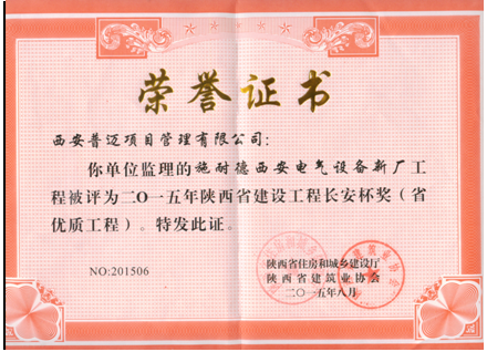 获得2015年陕西省建设工程长安杯奖(省优质工程)